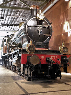 Binnen was er nog meer veranderd. De hal was helemaal in de oude staat hersteld inclusief de oude wandschilderingen. Vroeger kon je in het hele voormalige stationsgebouw zelf de tentoonstelling over de spoorwegen bekijken. Dat was in de linkervleugel niet meer het geval. In de rechtervleugel wel, maar daar waren er nieuwe en andere dingen ondergebracht, zoals de koninklijke wachtkamer uit het gesloopte Haagse Staats-Spoor-Station, dat tot circa 1973 op de plek van het huidige Den Haag Centraal Station had gestaan. Buiten stonden op het enige spoor langs het perron en op het al eerder genoemde terrein naast het stationsgebouw de stoomlocomotieven en spoorwegwagons. Nu zijn er achter het ooit enige spoor langs het perron, meer sporen aangelegd, is er een draaischijf te bekijken (al was het materieel daar een tikje rommelig opgesteld, maar dat terzijde), en staat er nu ook recenter materieel. En - bovenal - is er een enorme hal gebouwd waarbinnen tegenwoordig de uiteindelijke tentoonstelling is ondergebracht.